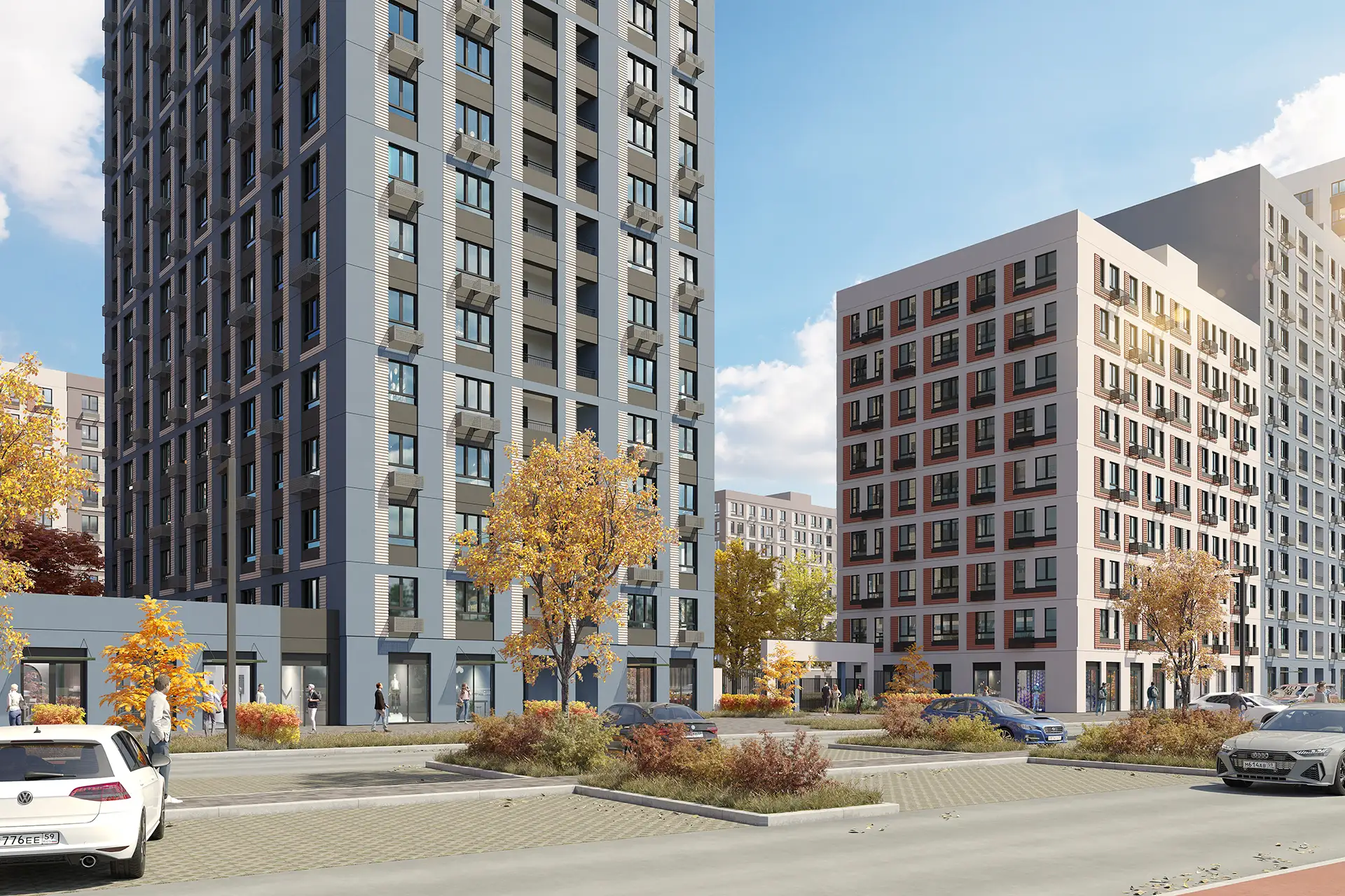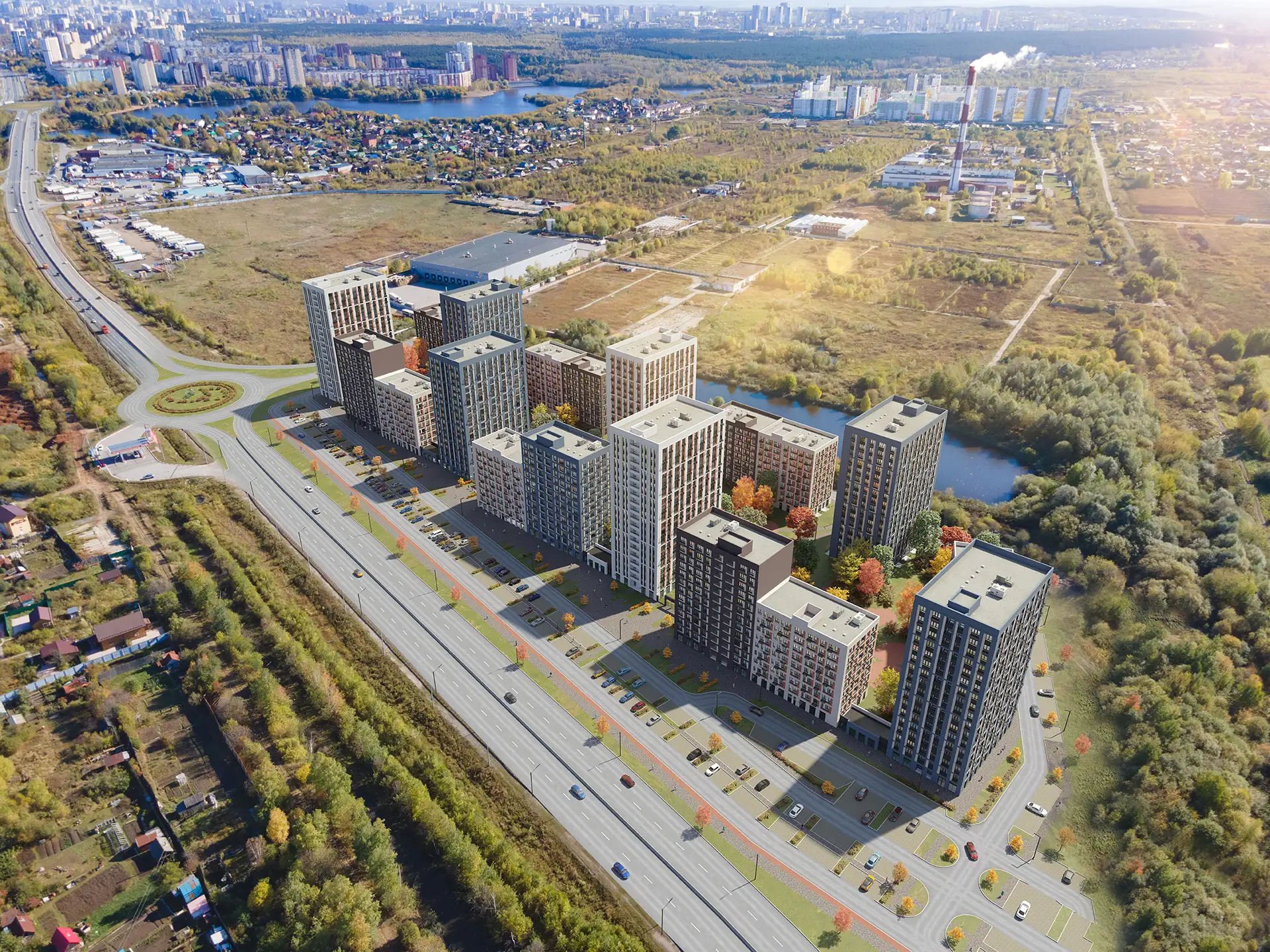 Концепция жилого квартала переосмысливает промышленно-складскую территорию площадью 5,8 га в высокоэтажный жилой район с зелёным каркасом и общественным пространством у воды. Планировочная структура формирует периметральную застройку с дворами, детским садом, игровыми и спортивными площадками и продуманной сетью пешеходных и транспортных связей.