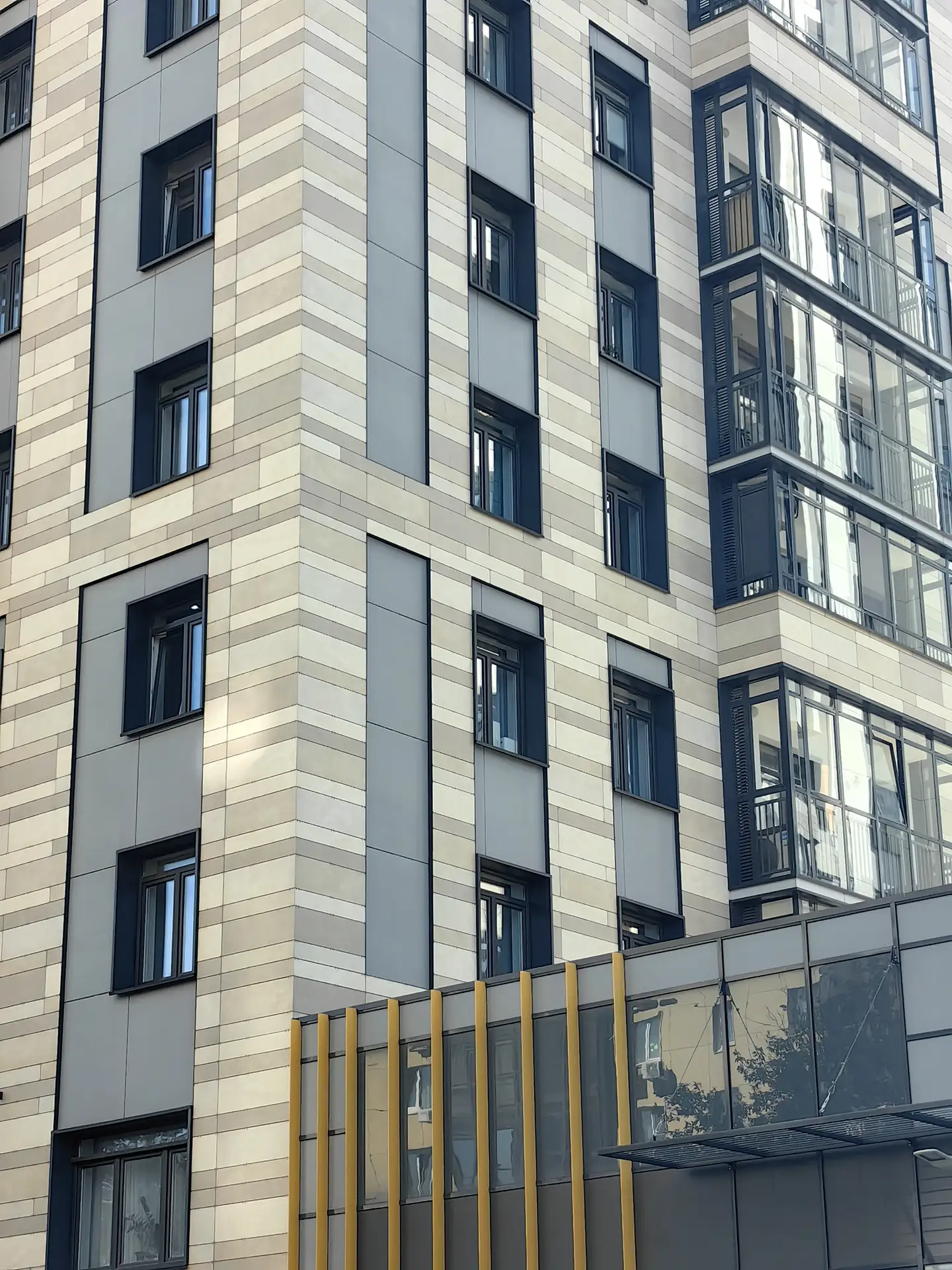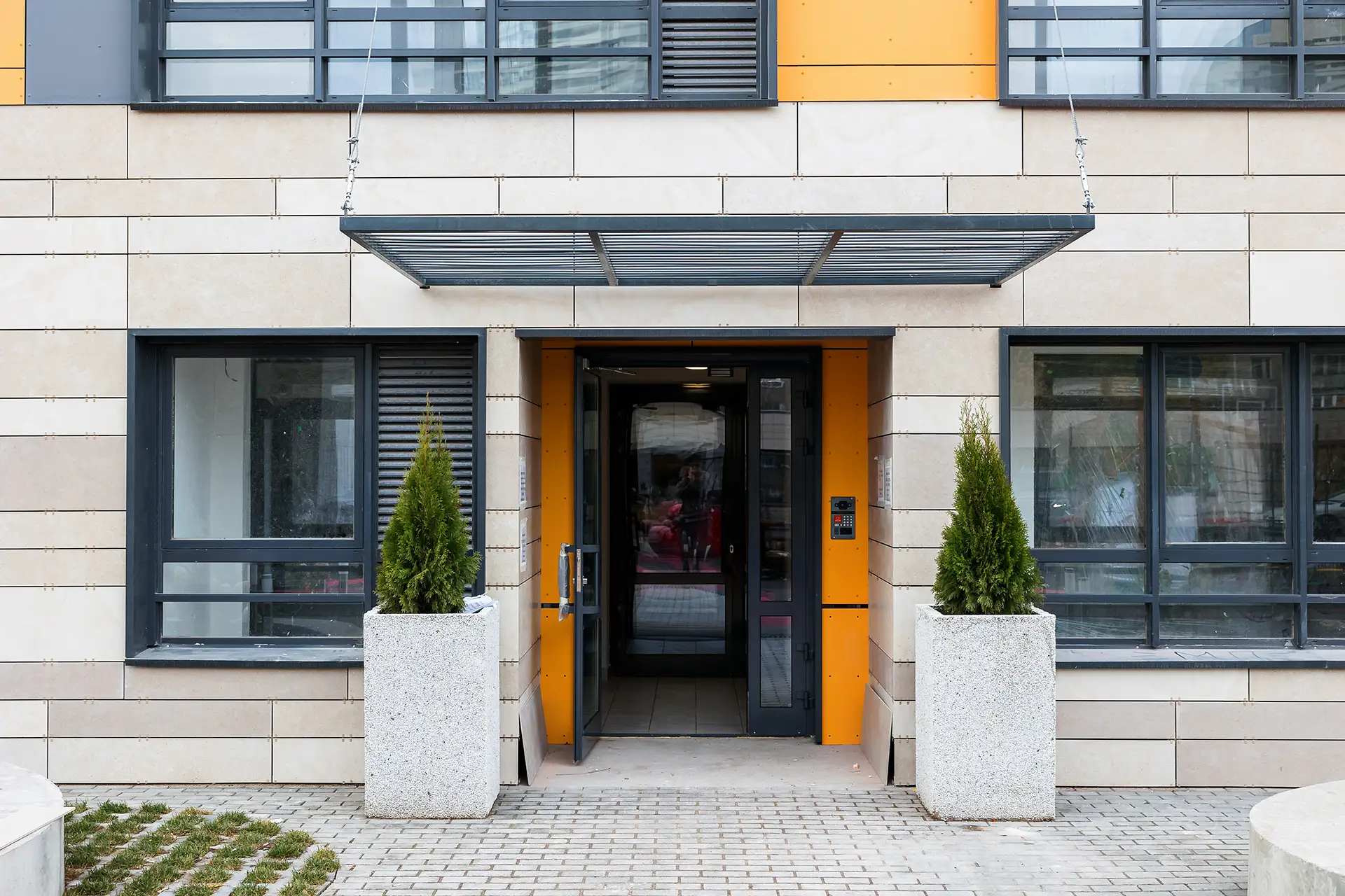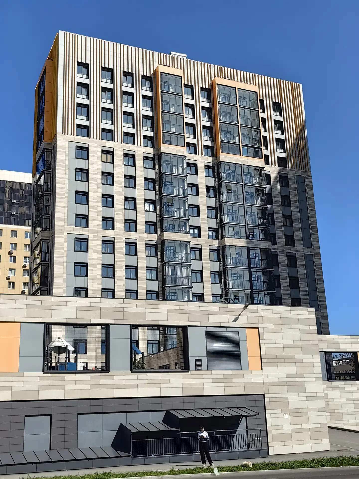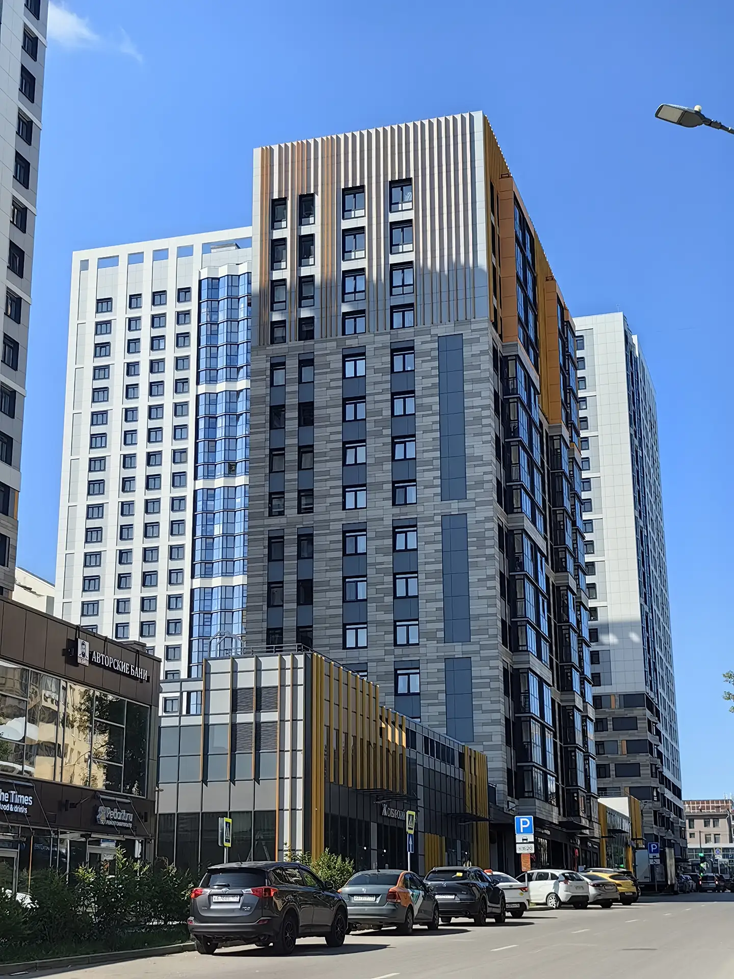 Квартал расположен в динамичной части города с развитой инфраструктурой, в стесненной городской застройке. Нашей задачей стояло сделать двор приватным и безопасным, огородить жильцов от шумных улиц. Таким образом двор поднят на стилобат в уровень второго этажа, а первый этаж предназначен для коммерции и автостоянки.