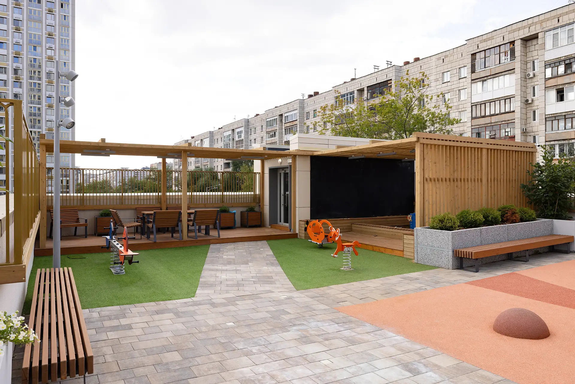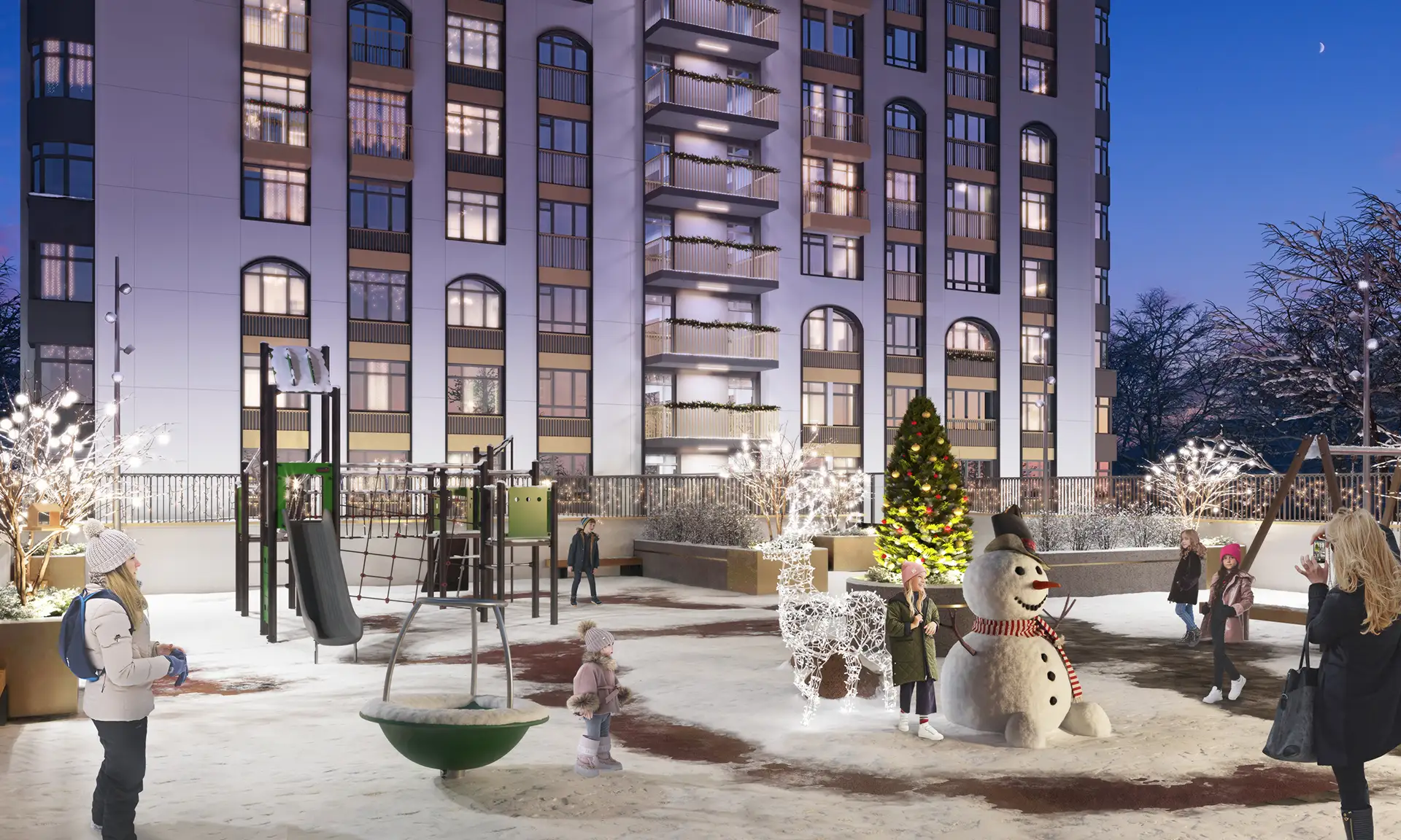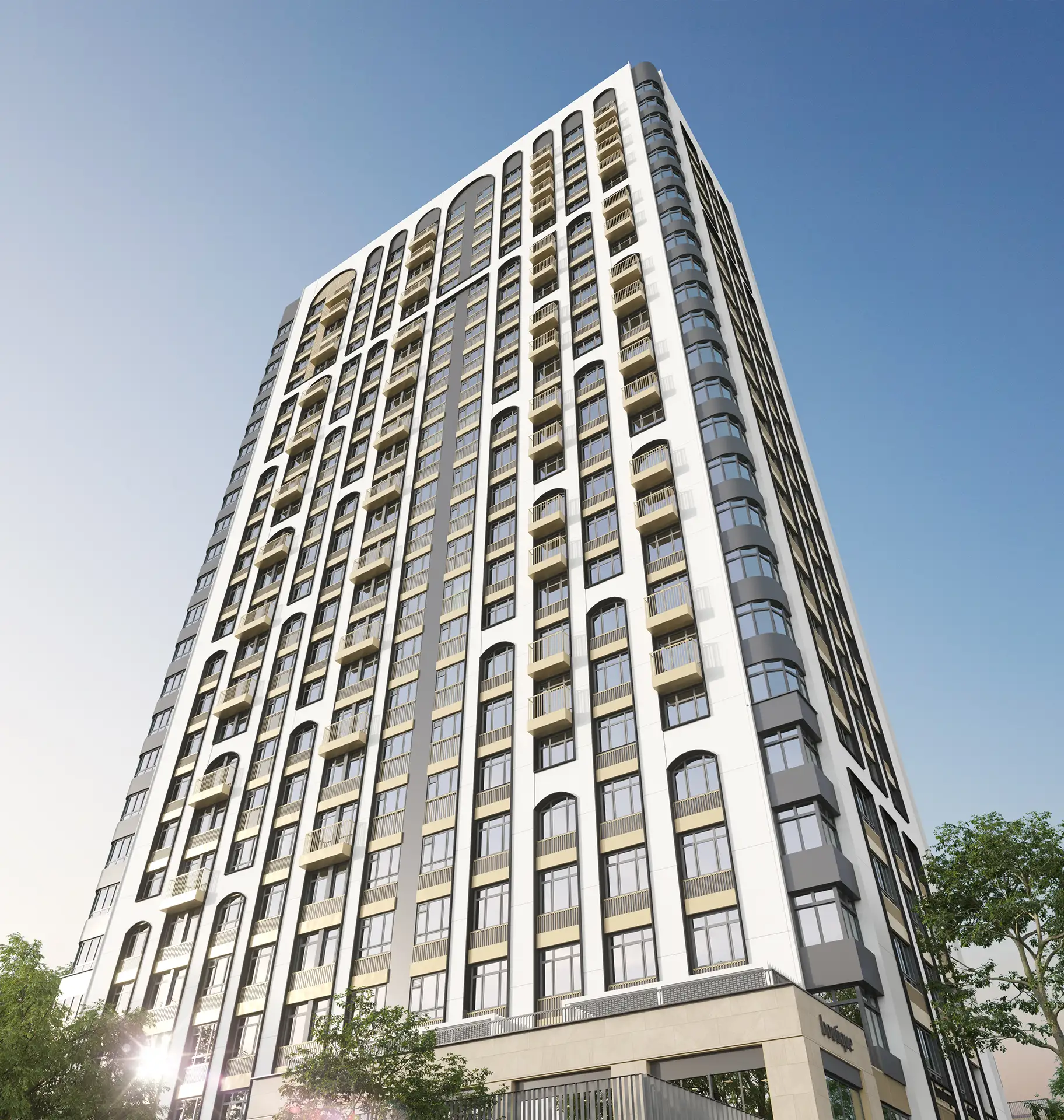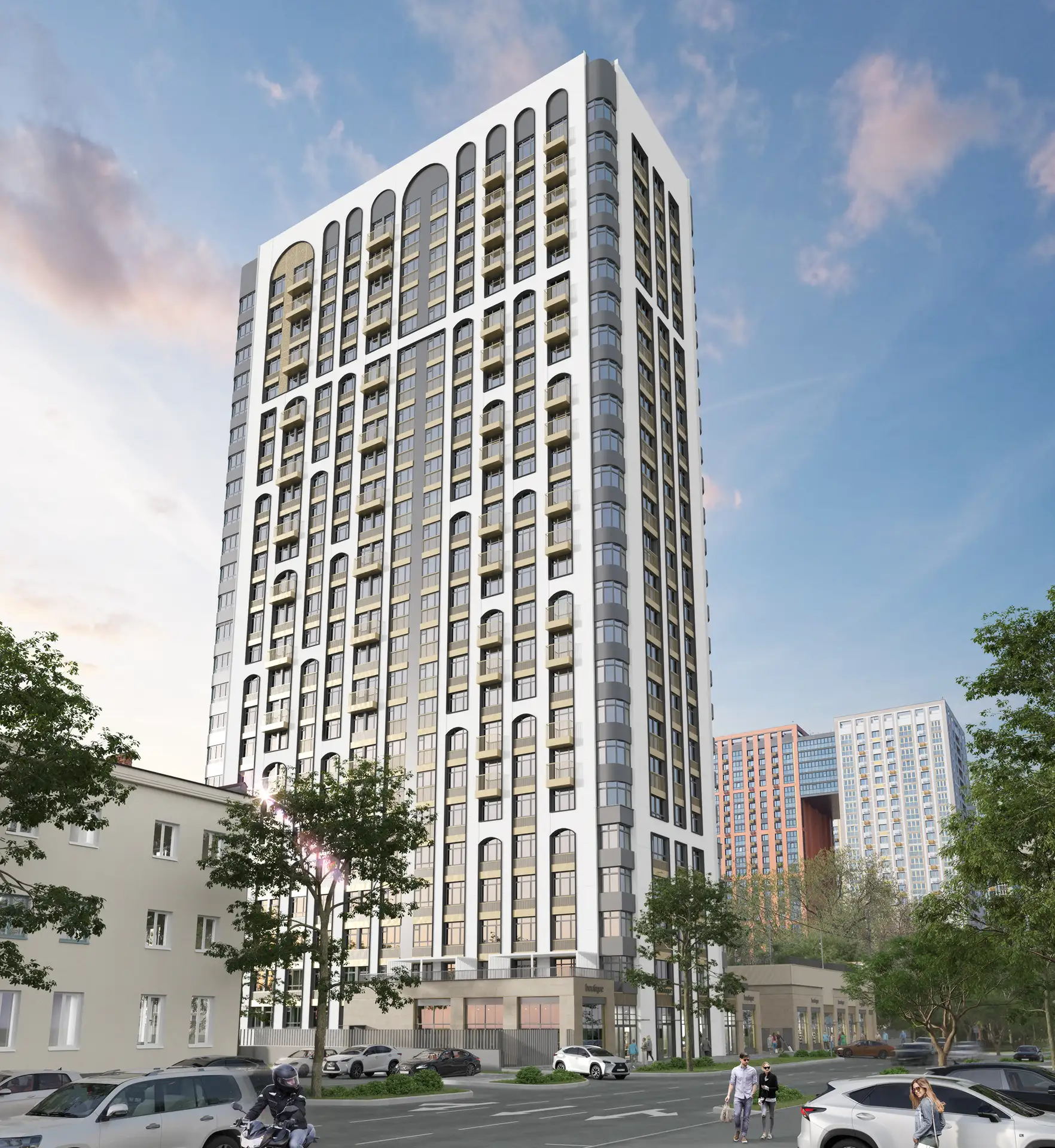 Концепция фасадов выделяет здание среди остальных, за счёт применения арочных проемов и ниш. Это не просто современный тренд в оформлении фасадов, но и своеобразный жест в сторону локации объекта.
