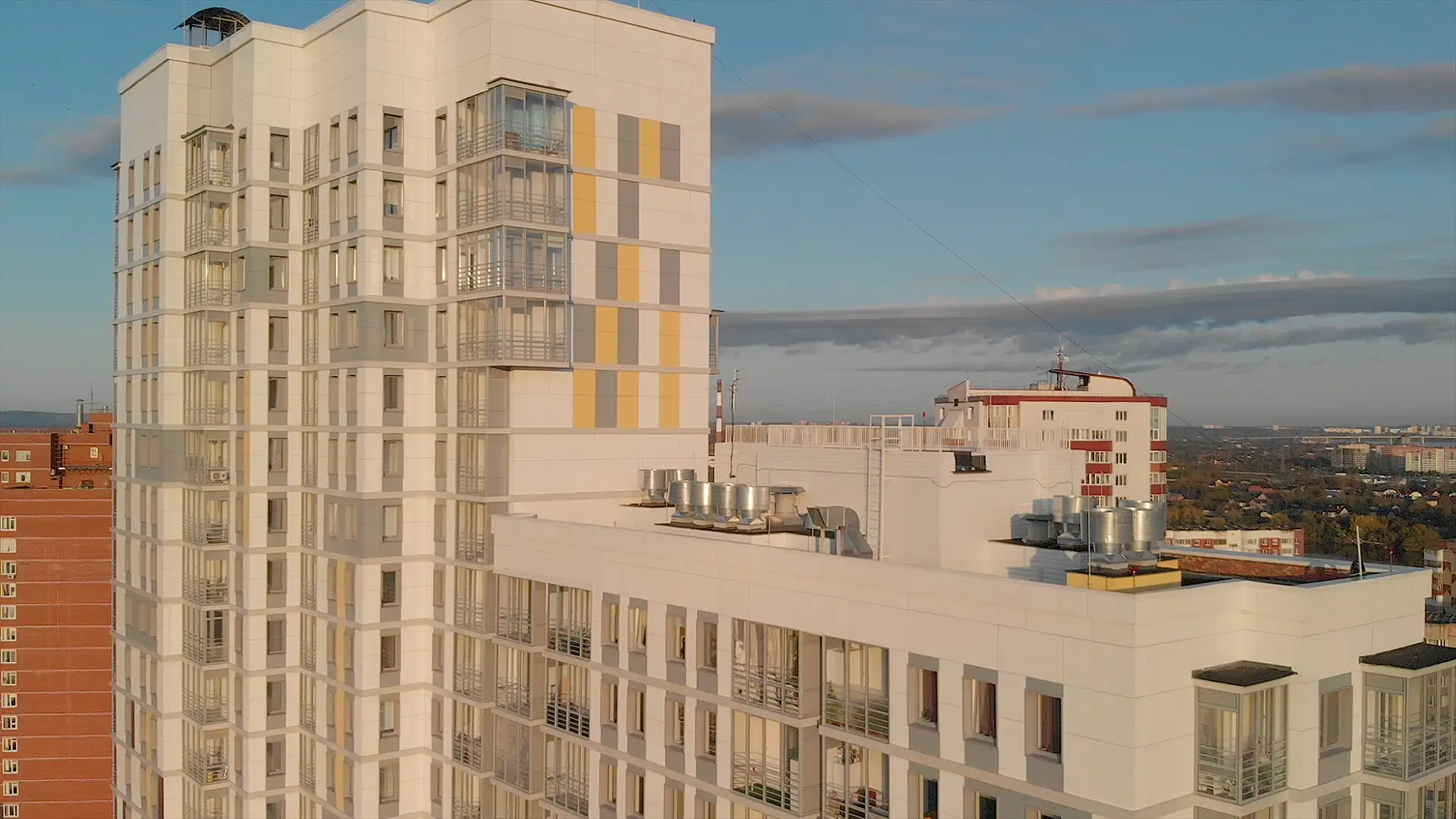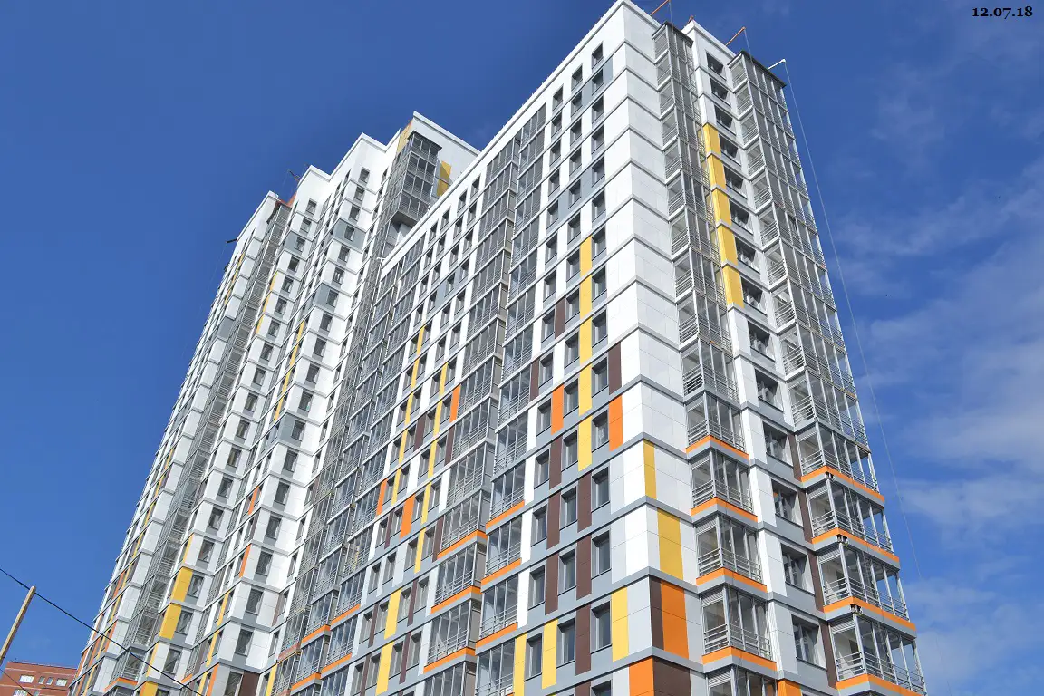 Двухсекционный многоквартирный жилой дом переменной этажности.