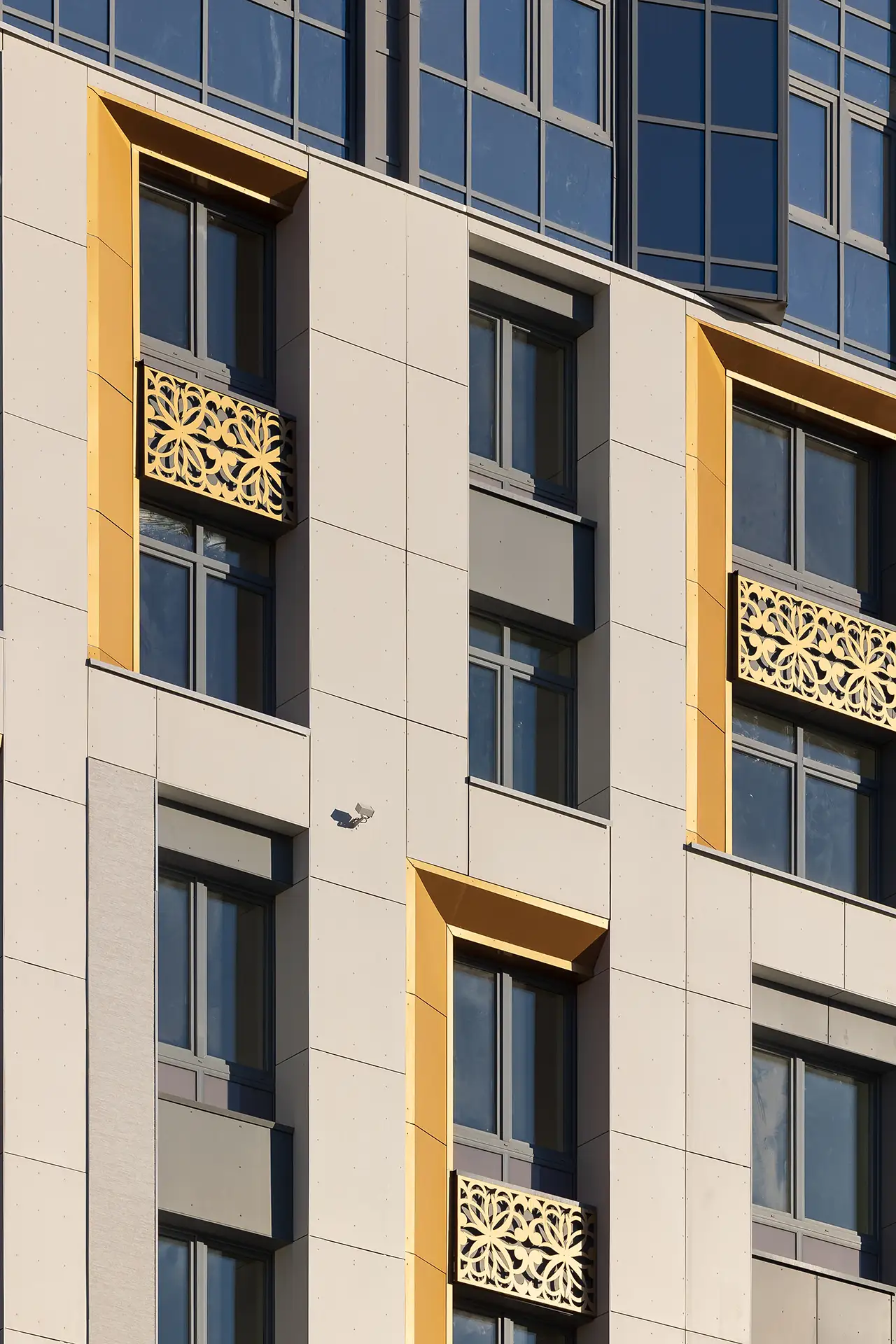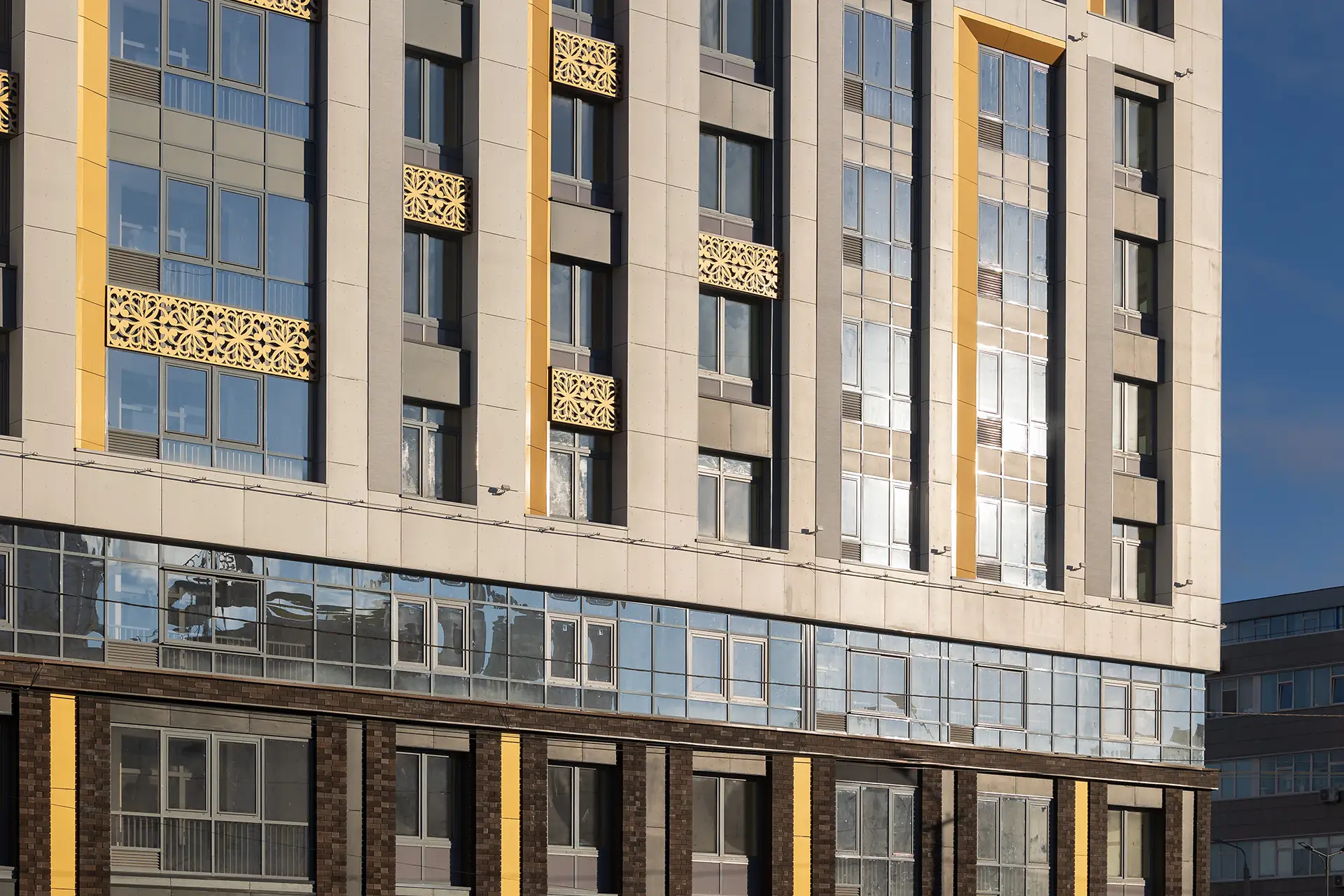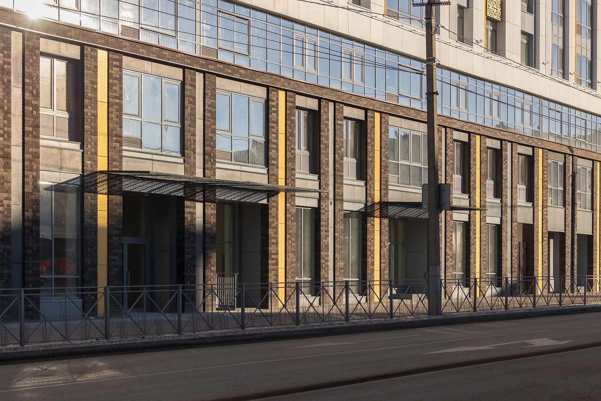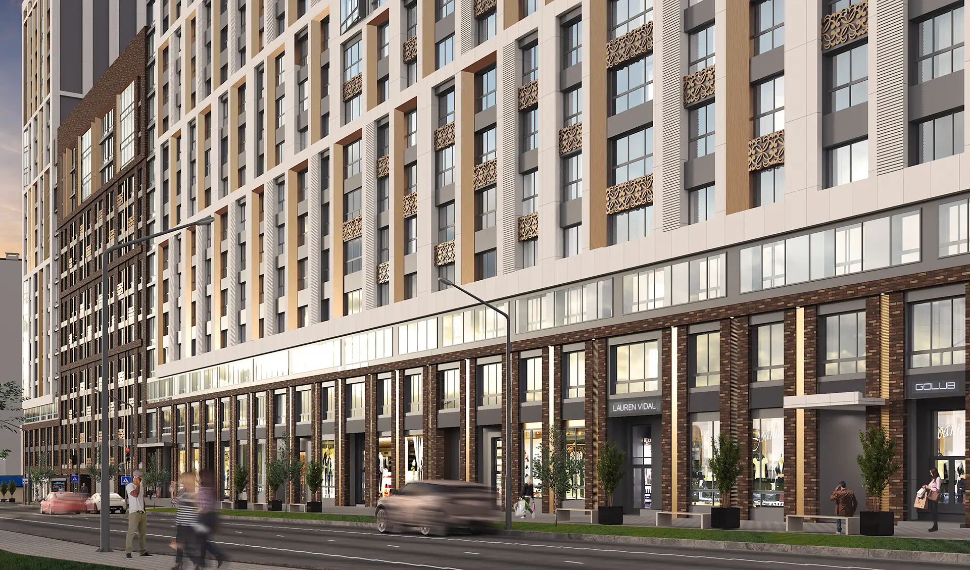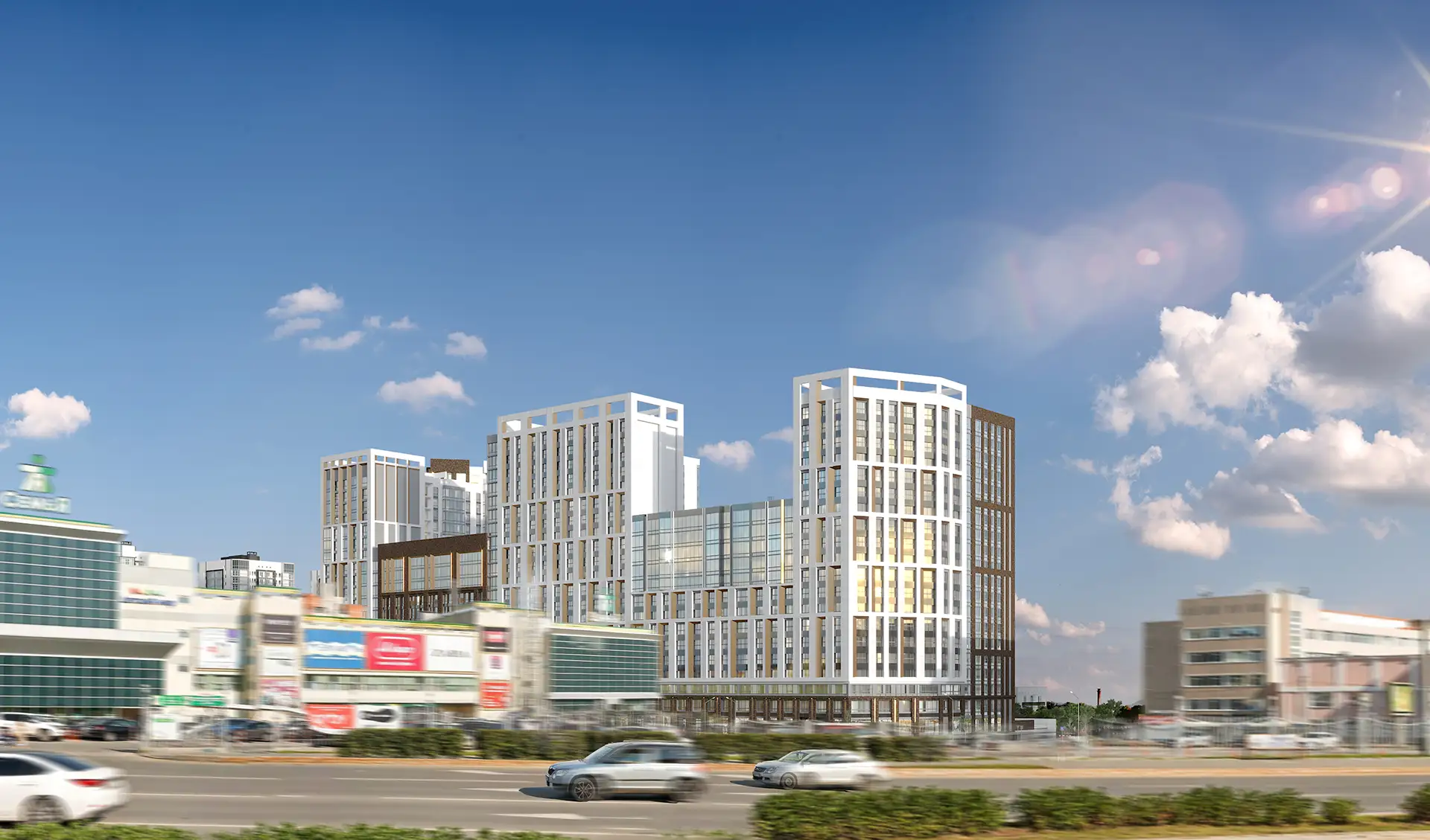 В рамках данного проекта разработаны фасадные решения и благоустройство дворового пространства для комплекса многоквартирных жилых домов.