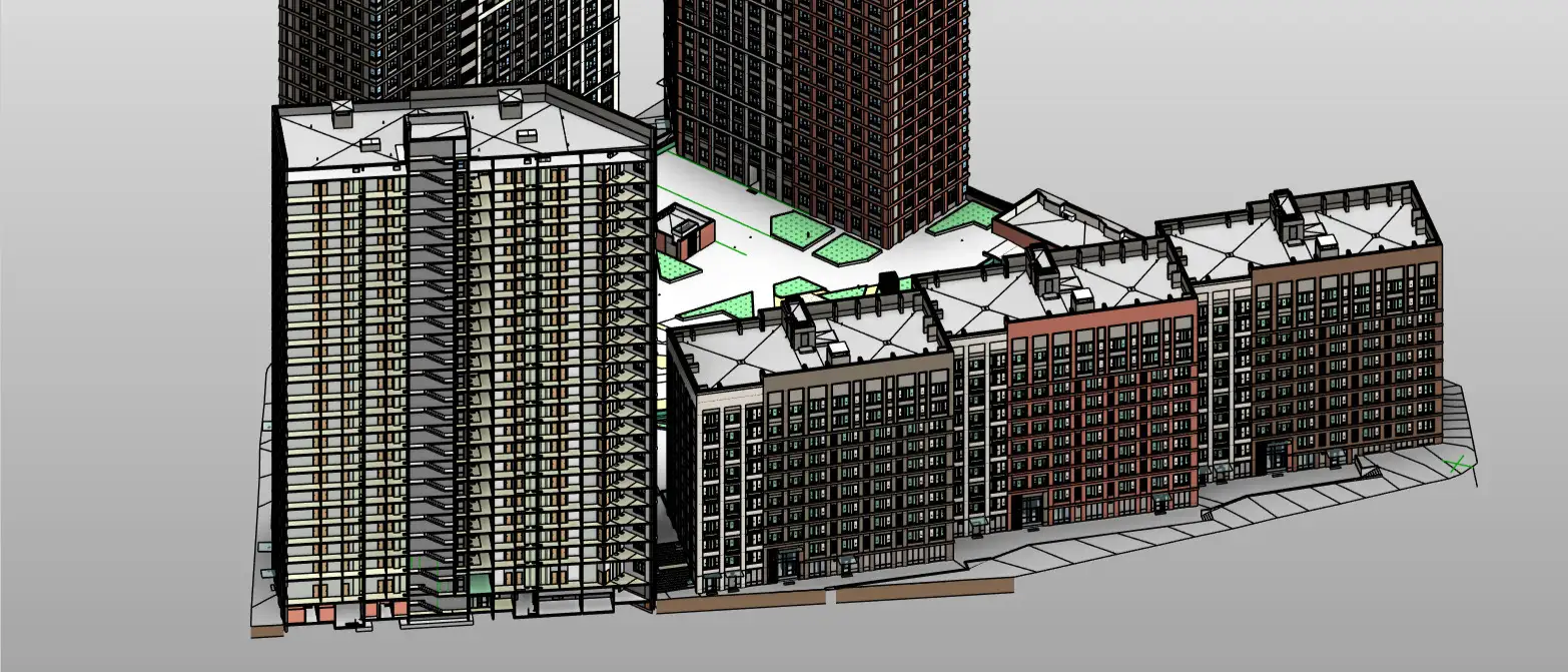 Комплексно разрабатываем проекты в единой команде архитекторов, конструкторов и инженеров с применением BIM технологий