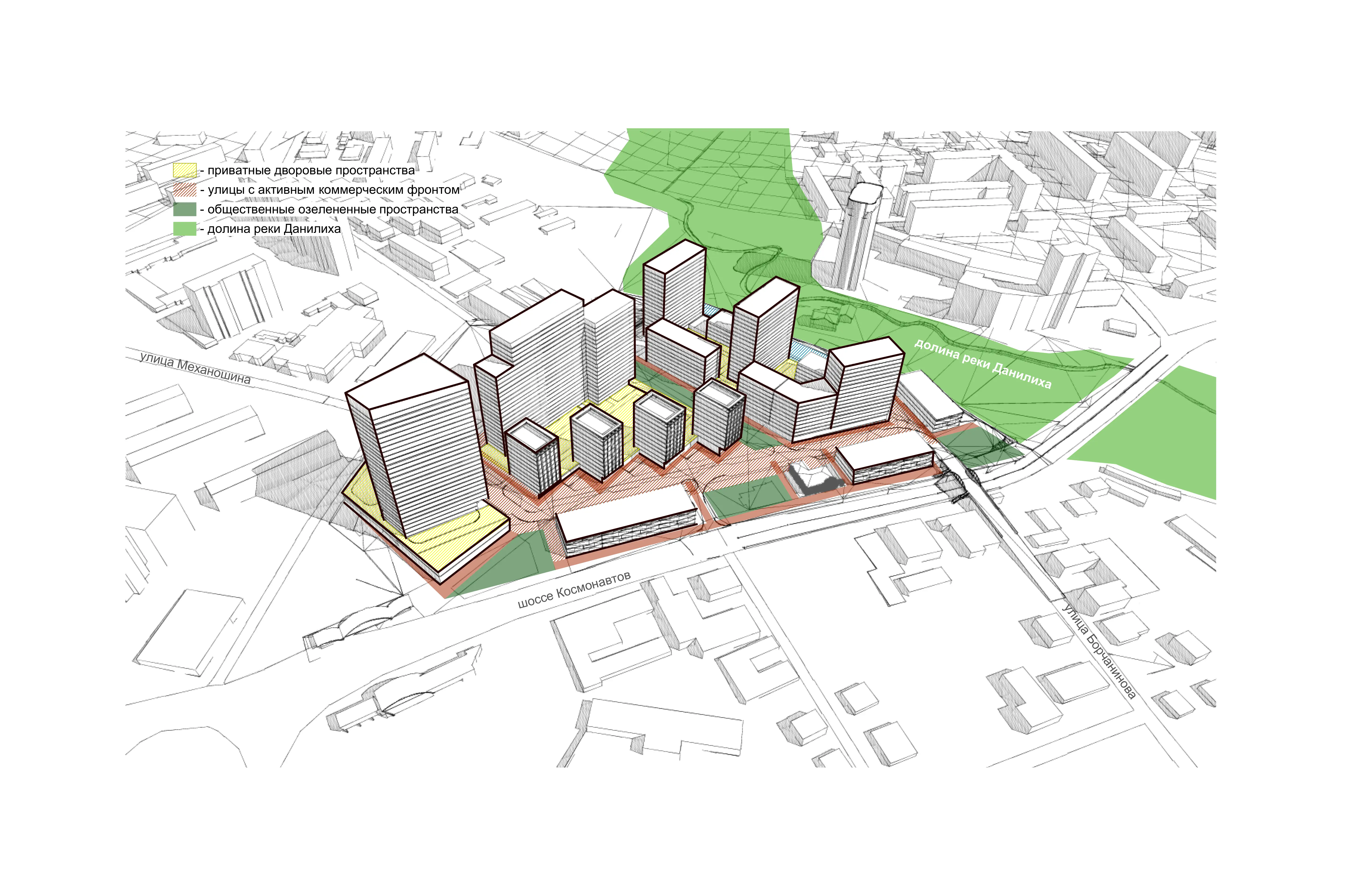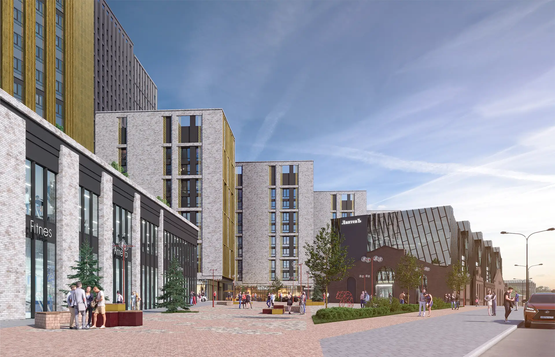 Архитектурная концепция застройки территории рынка "Гача". Площадка будет развиваться согласно нашей концепции с точки зрения идеи застройки, компоновки зданий, этажности, улично-дорожной сети.