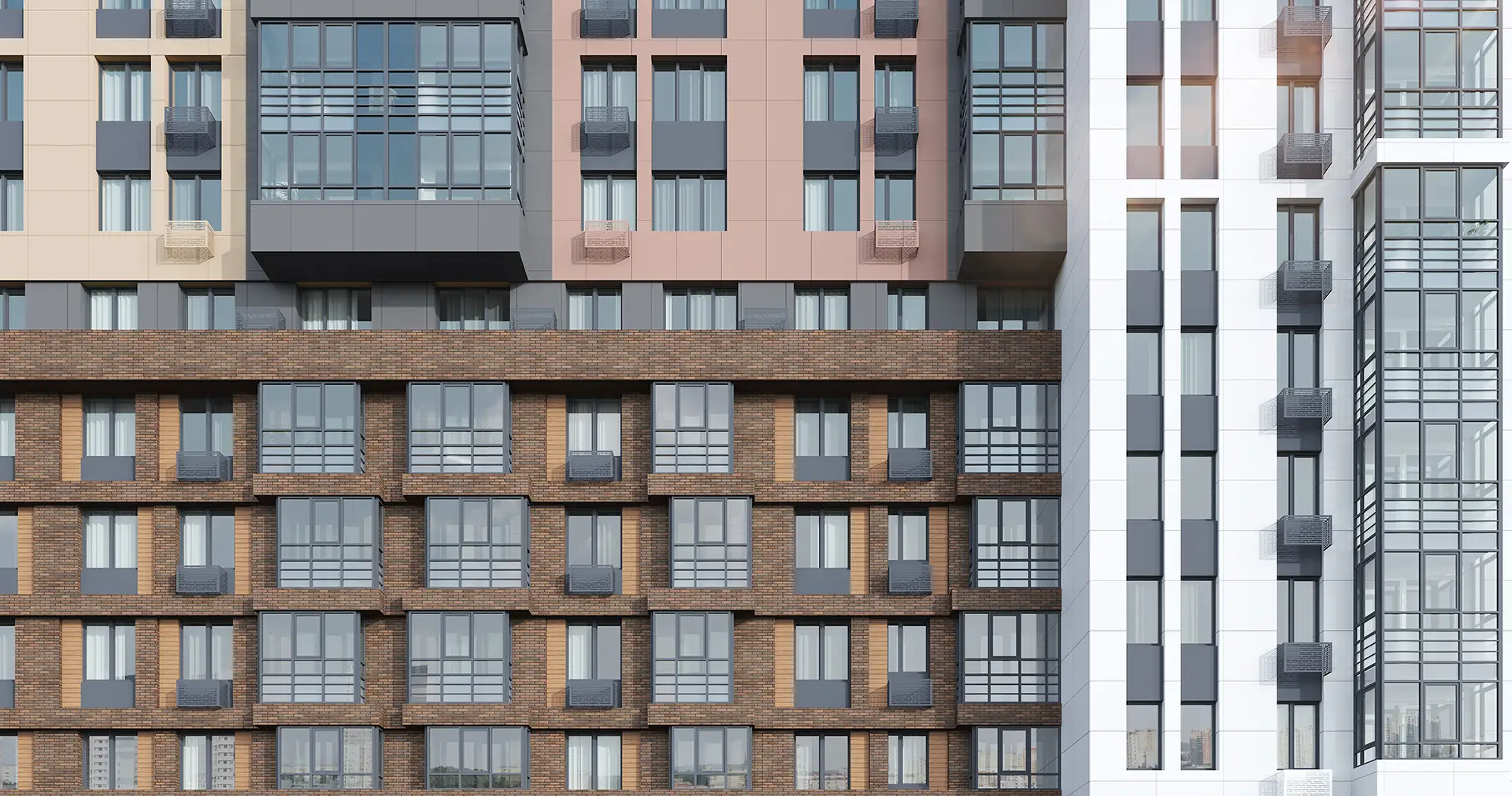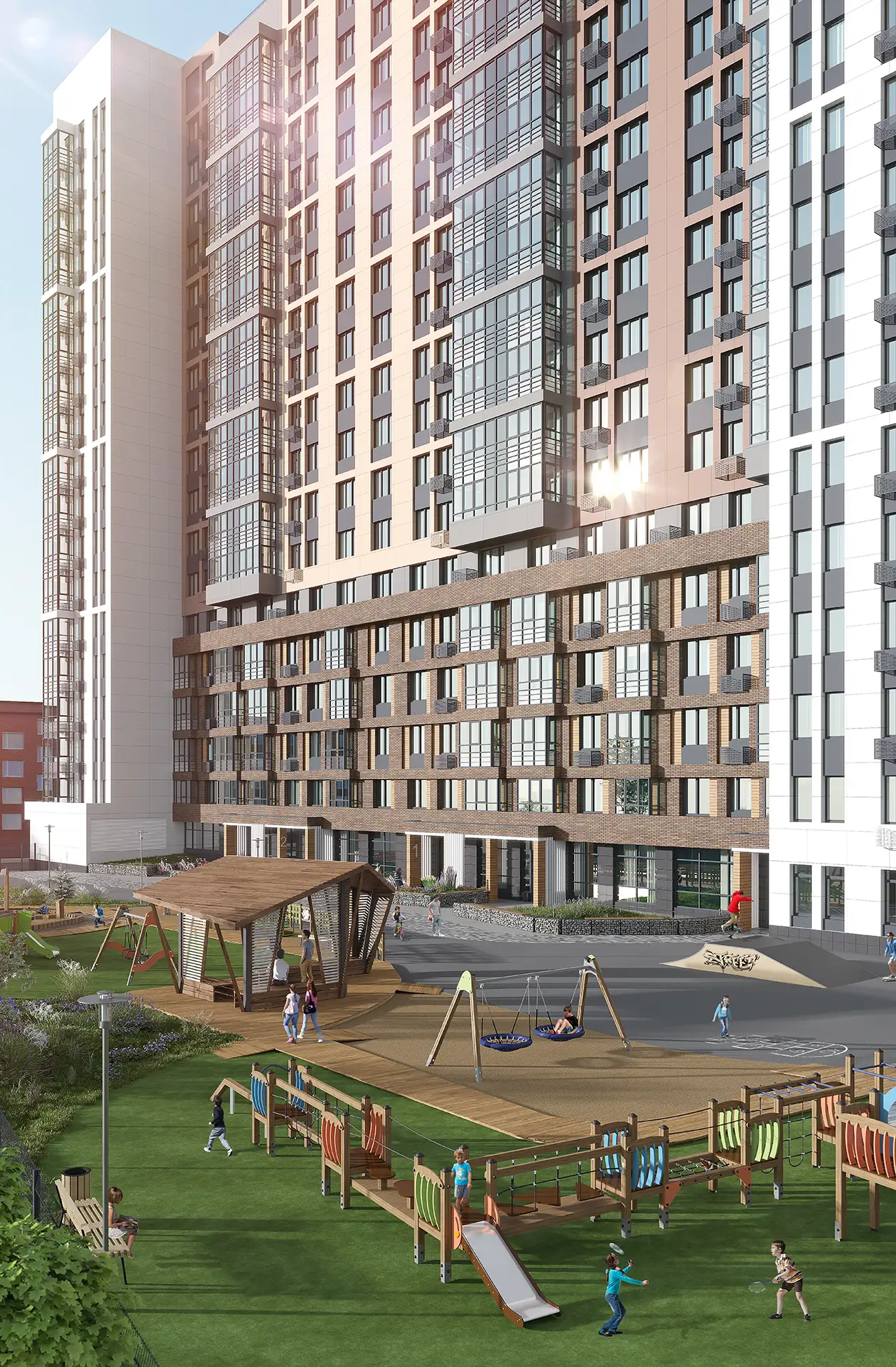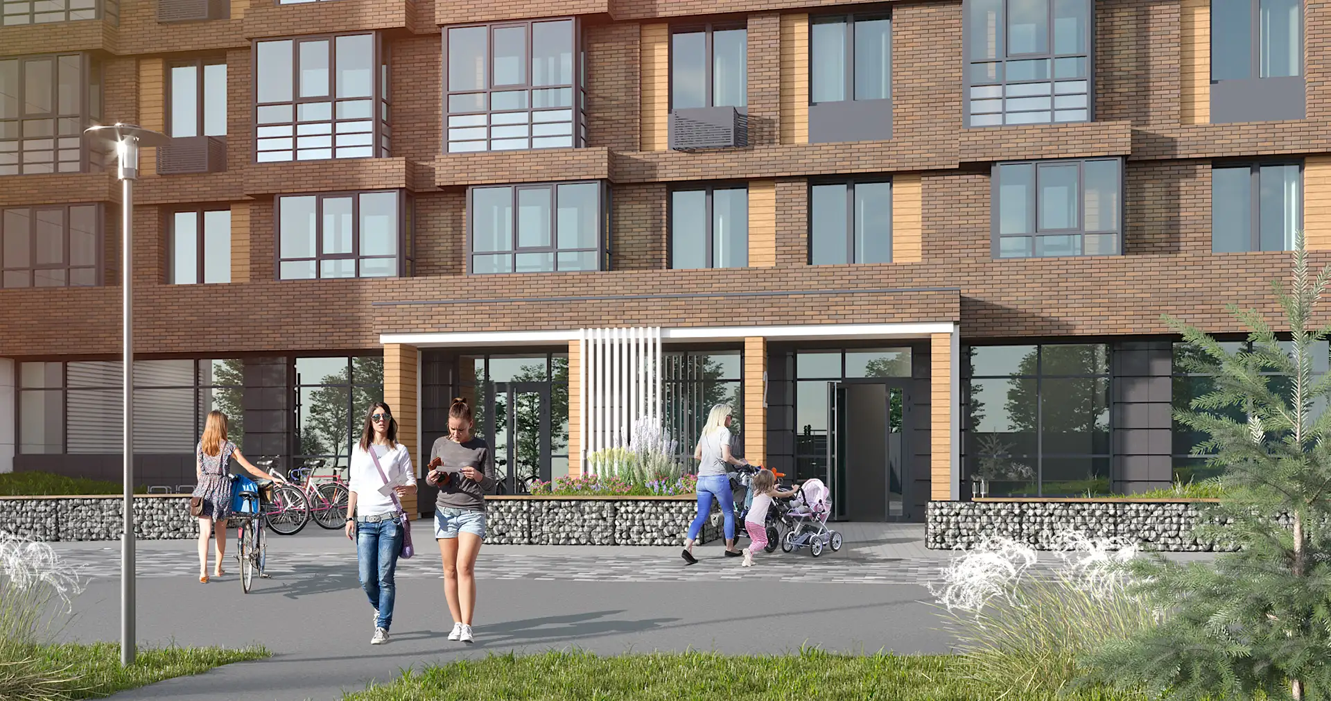 Двухсекционный многоквартирный жилой дом со встроенными помещениями многофункционального назначения и подземной автостоянкой.