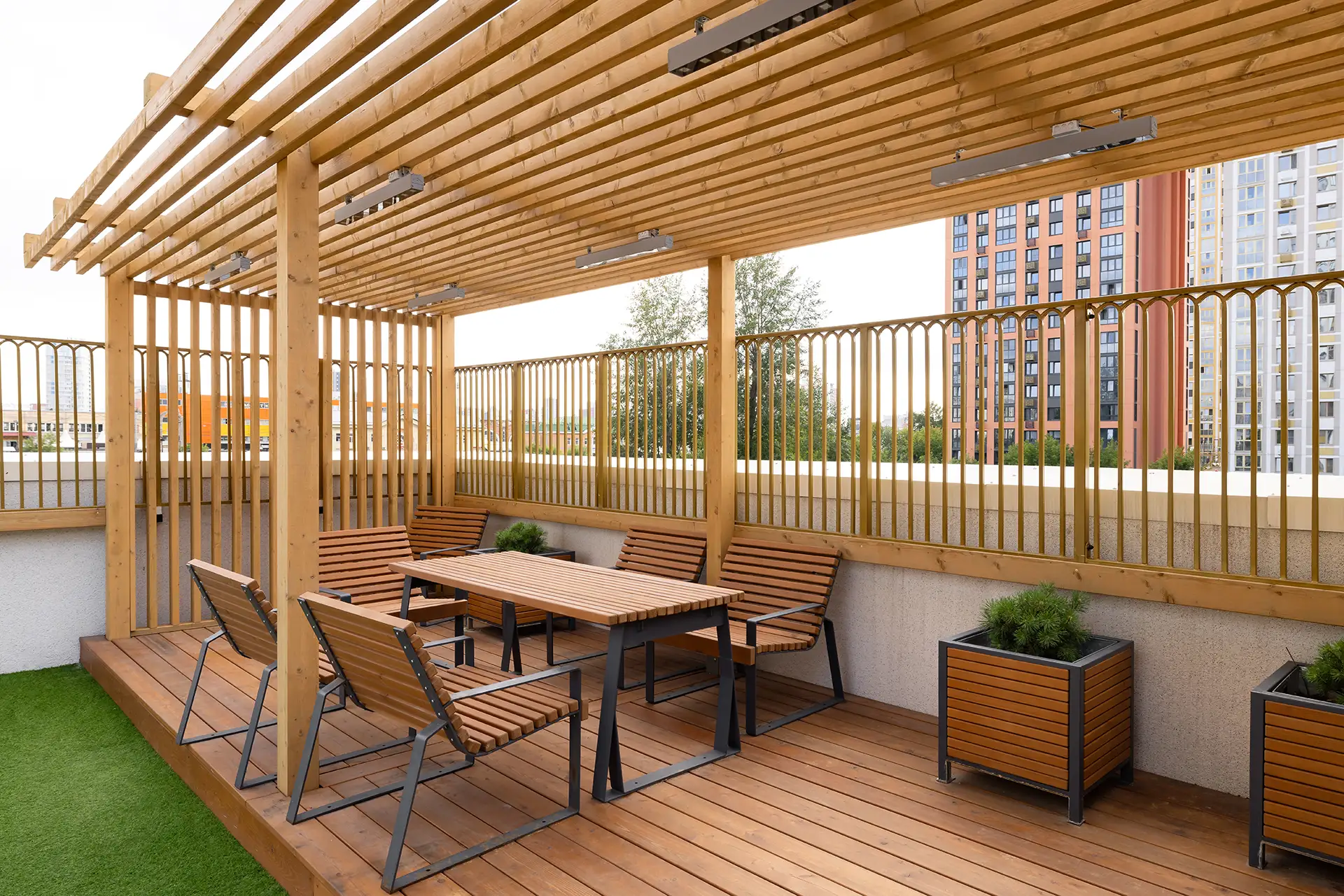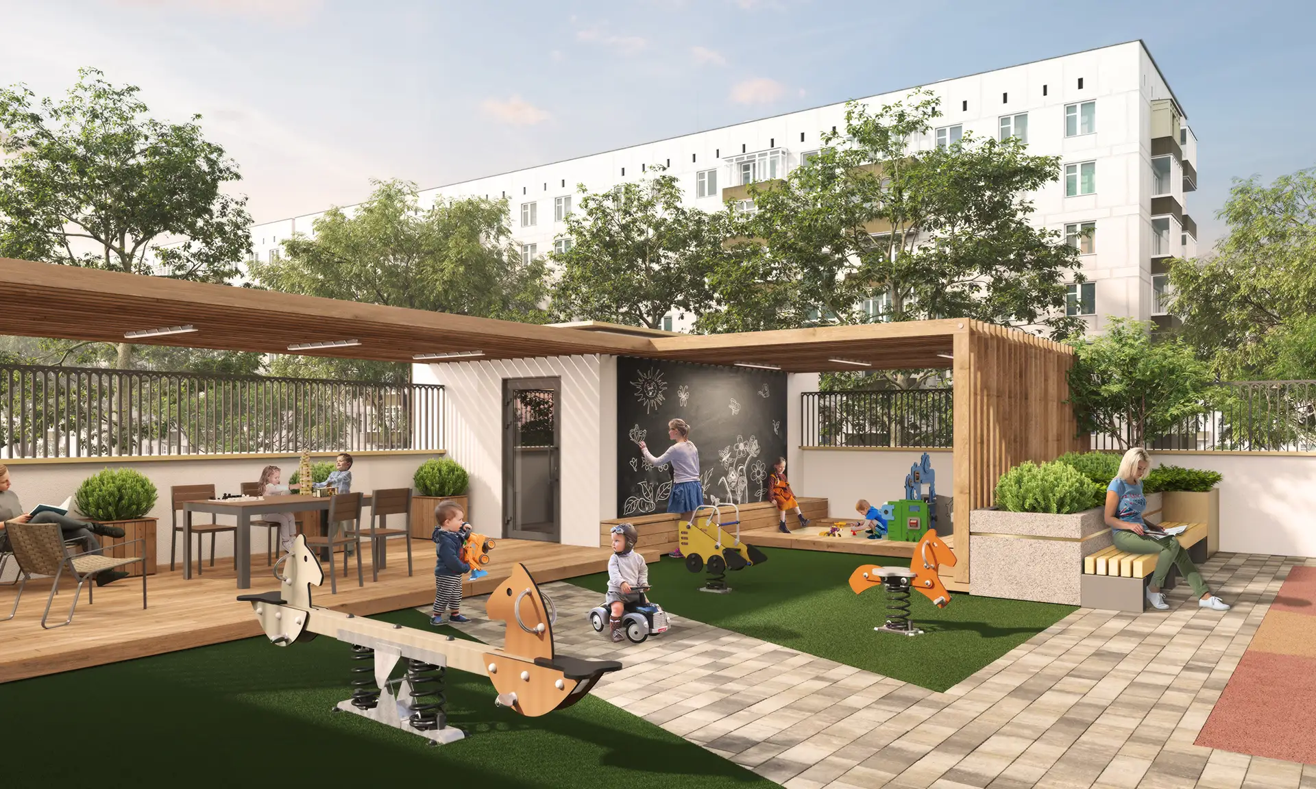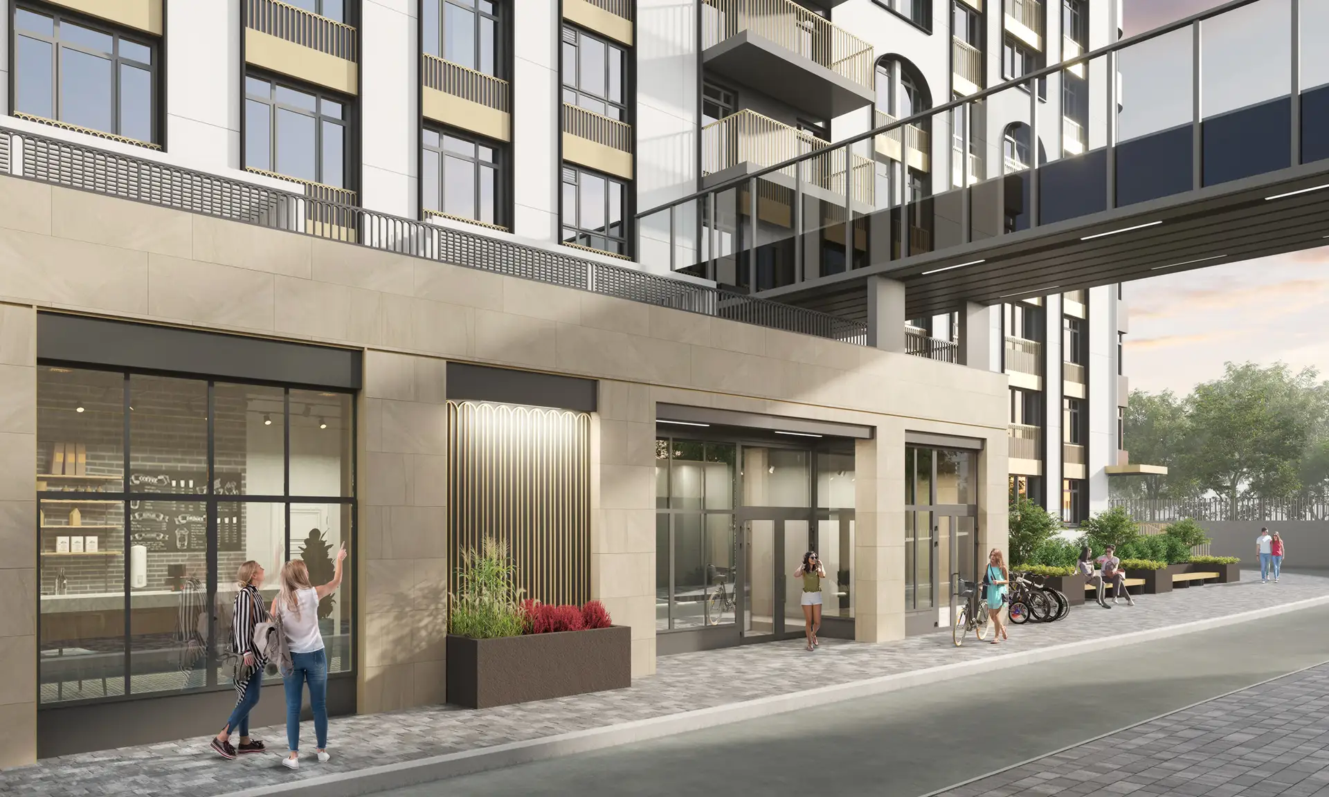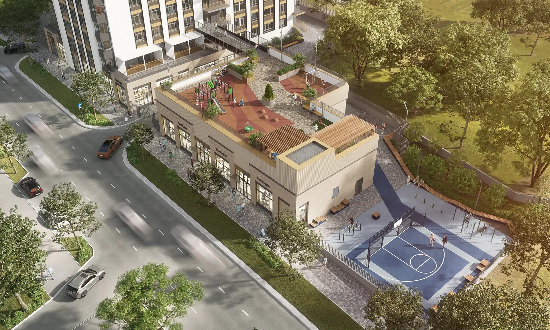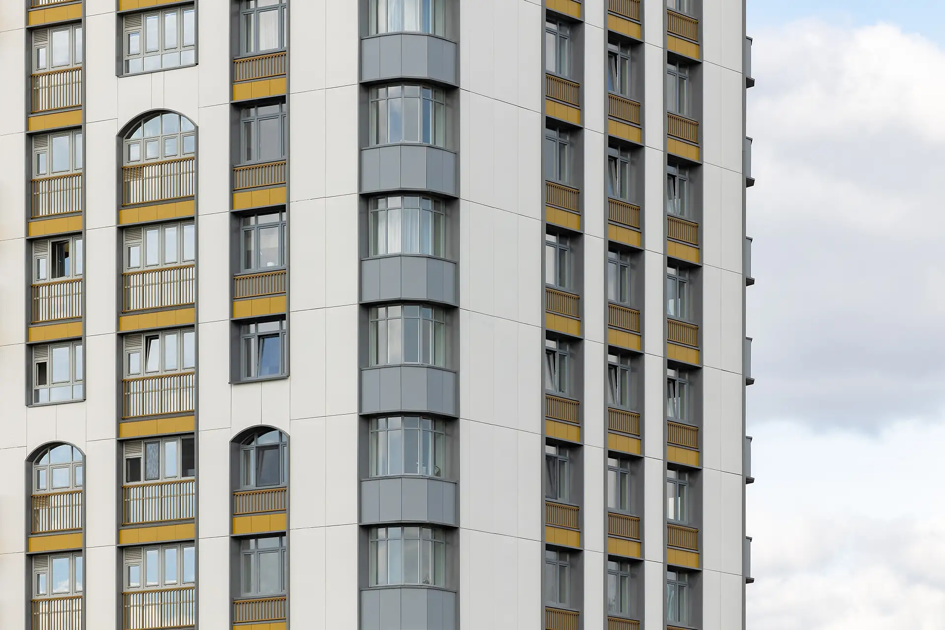 Концепция фасадов выделяет здание среди остальных, за счёт применения арочных проемов и ниш. Это не просто современный тренд в оформлении фасадов, но и своеобразный жест в сторону локации объекта.