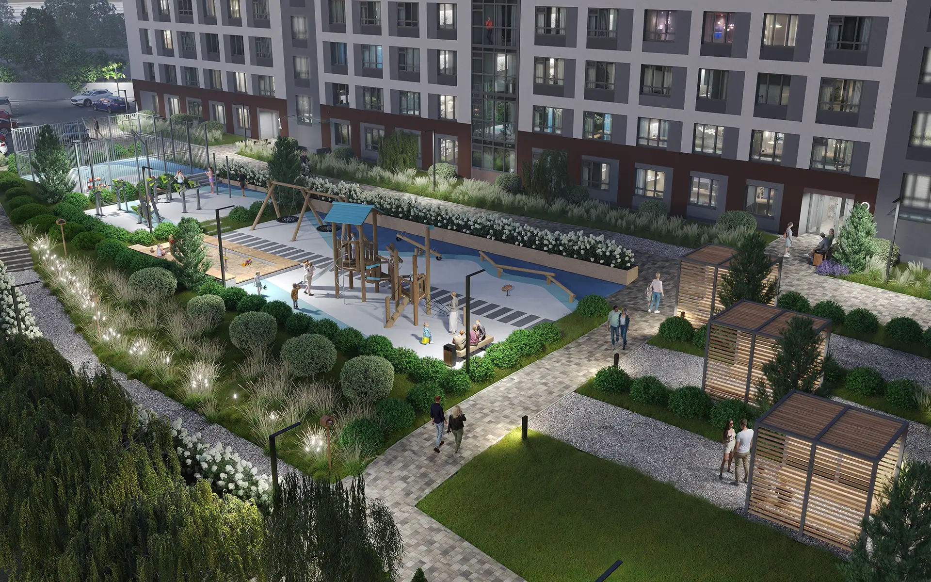 На Карпинского, 115 формируется новый микрорайон. Мы спроектировали его как цельную, живую среду — с маршрутами для прогулок, дворами без машин и местами для отдыха.